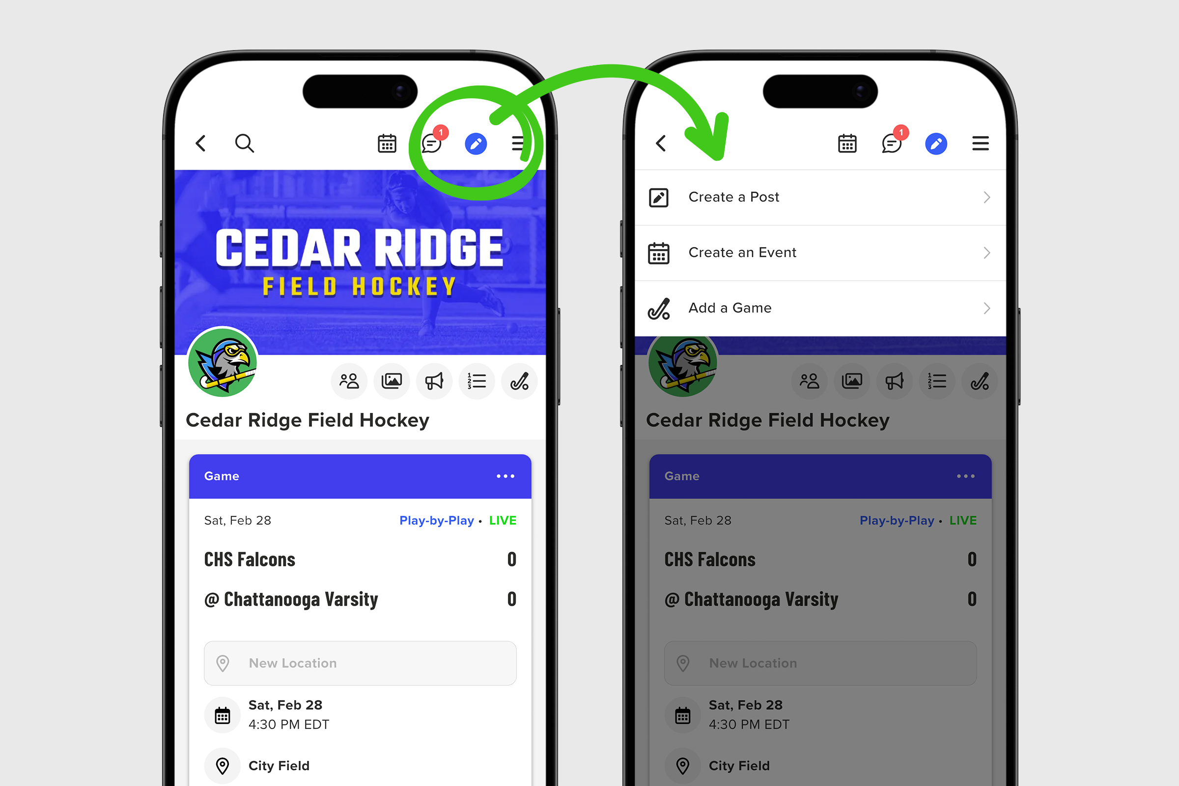 1. To get started with your new post, tap the blue Pencil Icon located at the top of your group’s home screen.
